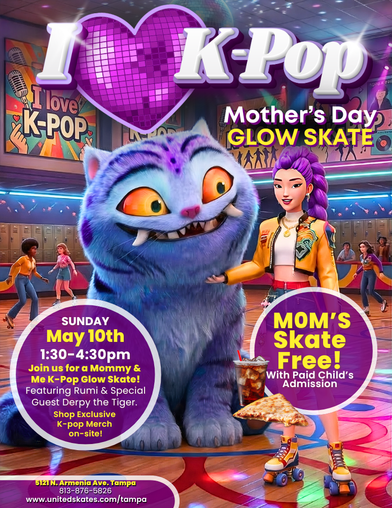 Hey Kids... We're Celebrating Mother's Day With A Special K-Pop Glow Skate Featuring K-Pop Music, Plus Visits From Rumi and Derpy Tiger Mom's Skate FREE With A Full Paid Child's […]