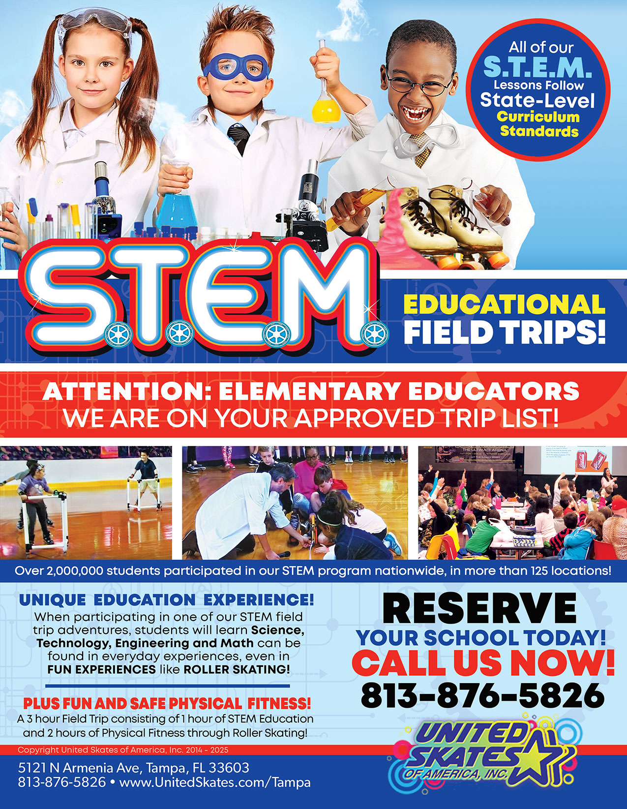 Introduce your students to a unique educational STEM field trip in Tampa, FL at United Skates of America that gets them excited about learning! Students will learn how the concepts of science, technology, engineering, and math can be found in everyday experiences, even fun experiences like roller skating!