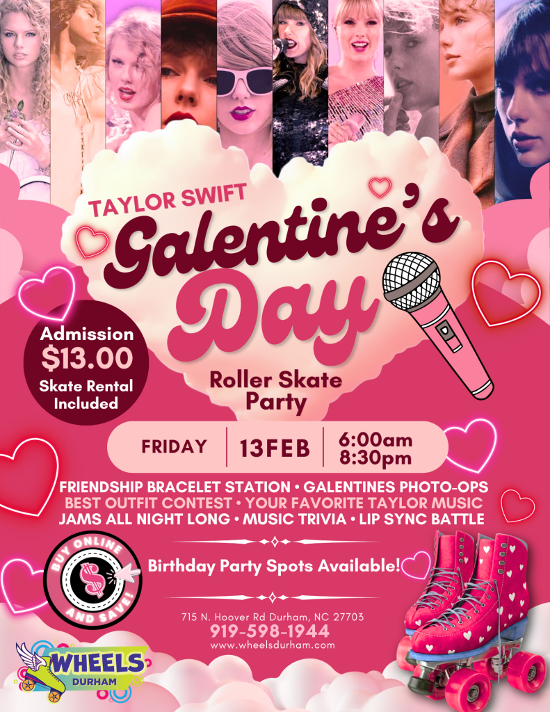 Grab your besties and celebrate Taylor Swift Galentine’s Day with us at Wheels Durham! ✨🎤