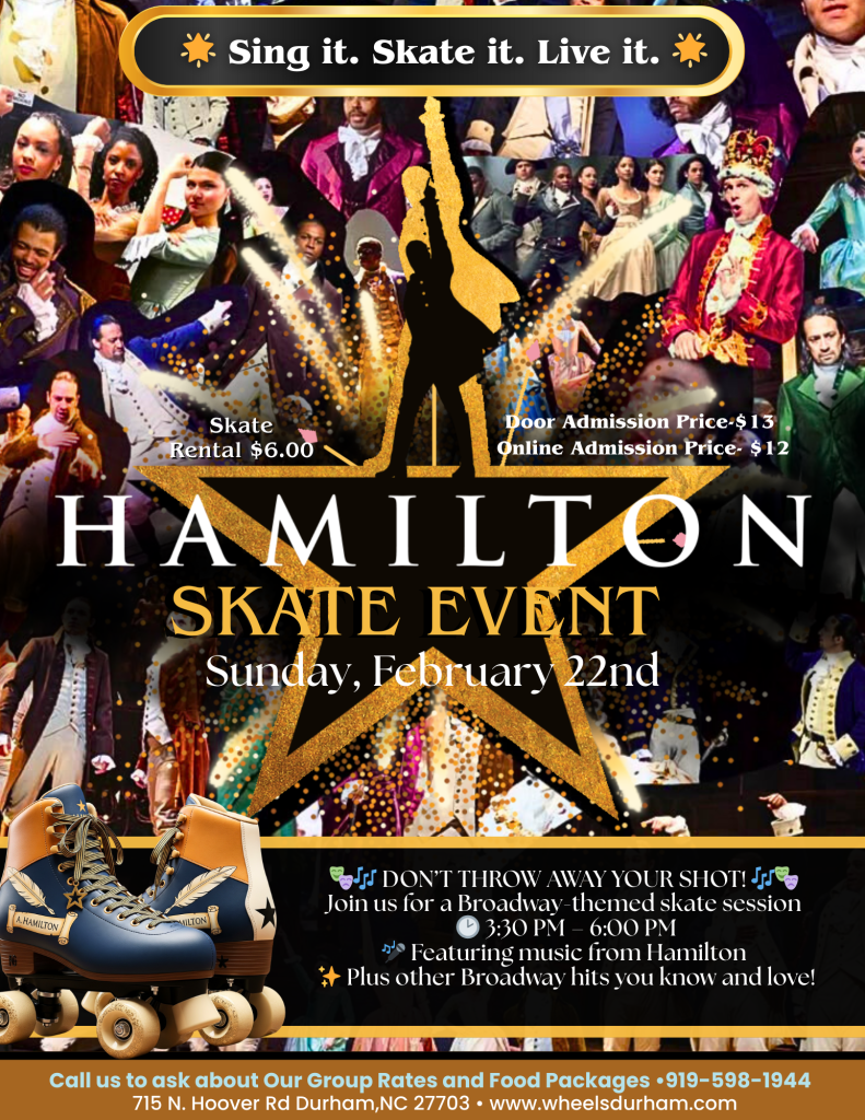 Don’t throw away your shot! Join us for a Broadway-themed skate session celebrating the music of Hamilton and other iconic Broadway hits.
