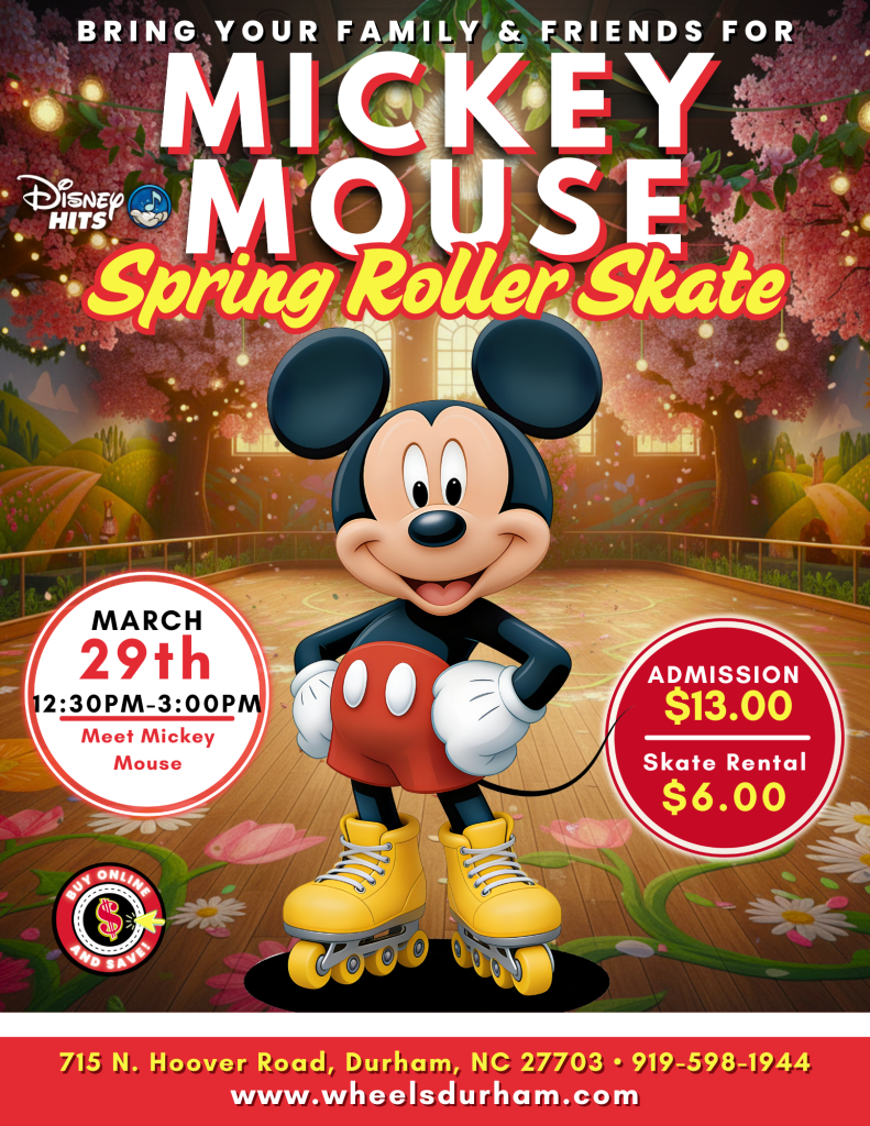 🎉 Meet Mickey Mouse in person and enjoy great music, spring vibes, and Disney hits while you roll!