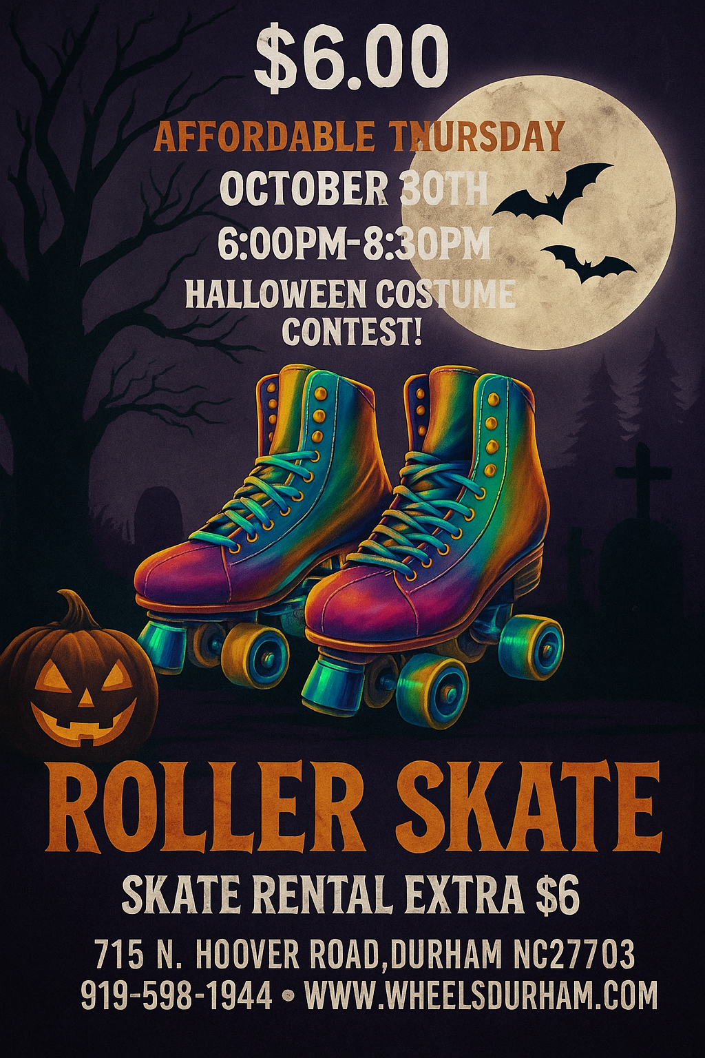 🎃 Click or Tap (If You Dare!) to Fill Out Our Waiver! 👻 All guests entering the facility must complete a waiver before creeping inside! 🩸 Admission: 💀 $6.00 Regular Admission 🕷️ $4.00 Spectator Admission (Non-skating chaperones 18+) 🛼 Rentals: 🦇 $6.00 Regular Skate Rental 🧙 $7.00 Rollerblade Rental 🕸️ $6.00 Skatemate Rental 🎶 Featuring: […]