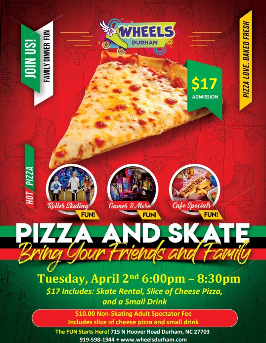 Free Dinner Night Tuesday, April 2nd 6:00pm- 8:30pm Admission: $17 Includes Skate Rental, Slice of Cheese Pizza, and a Small Drink Non-skating Spectator Fee - $10 Includes a slice of […]