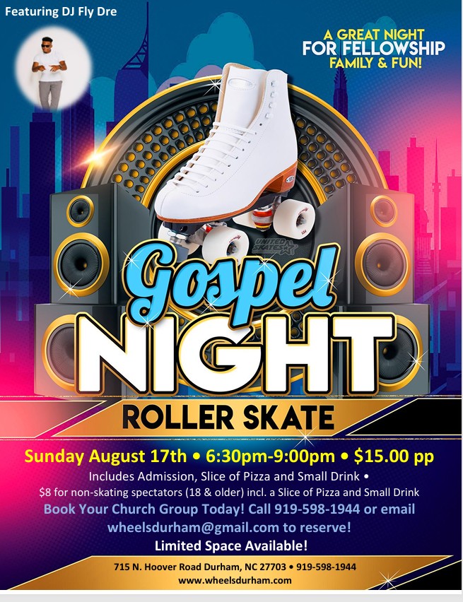 🙌🎶 Gospel Night Roller Skate 🎶🙌 Sunday, August 17 6:30PM–9:00PM Let the good times roll at Wheels Skating Center for a night of uplifting music, joyful vibes, and community fellowship! […]