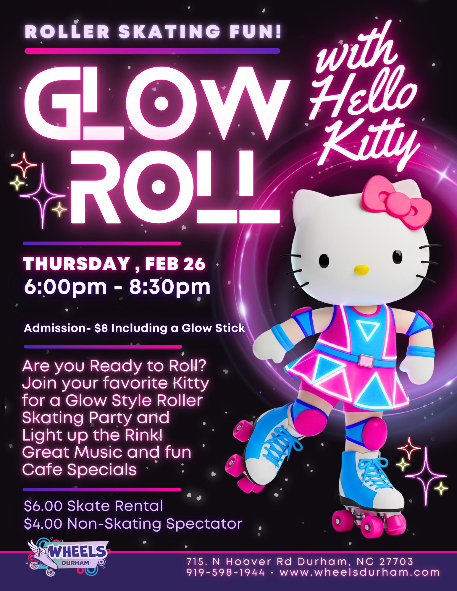 Roll into the ultimate glow night and light up the rink with everyone’s favorite kitty! 🐱💫 🛼 Thursday, Feb 26⏰ 6:00 PM – 8:30 PM 🎟 Admission: $8 (includes a glow stick!)👟 Skate Rental: $6👀 Non-Skating Spectator: $4 Get ready for a Glow Style Roller Skating Party with great music, glowing fun, and awesome café […]