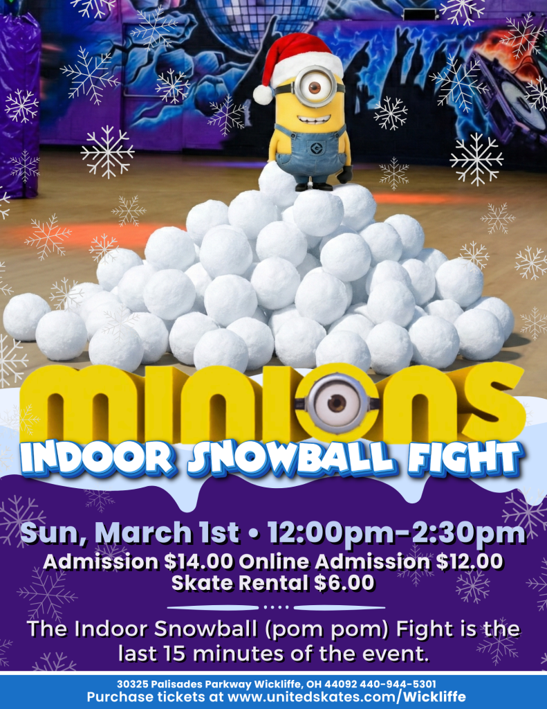 He’ll be skating, dancing, playing, and stirring up ALL kinds of Minion-style mayhem. Bring your friends and get ready to dodge, toss, laugh, and battle it out in the most FUN winter fight around!