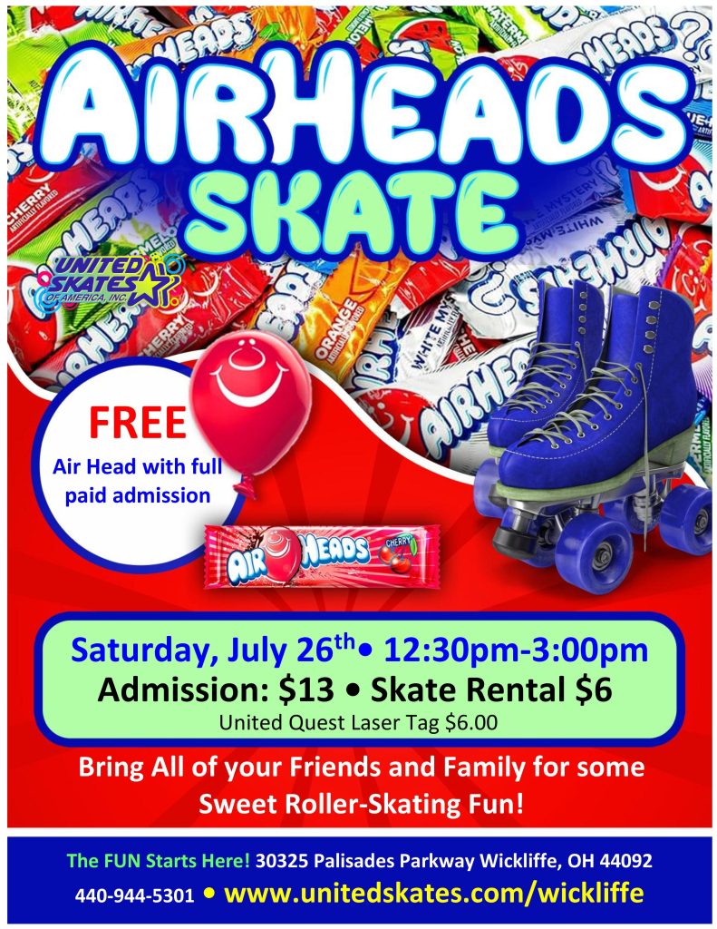 Join us for a candy-filled celebration where Airheads take center stage! Win Airhead-themed prizes all session long and enjoy the ultimate sugar rush on skates.