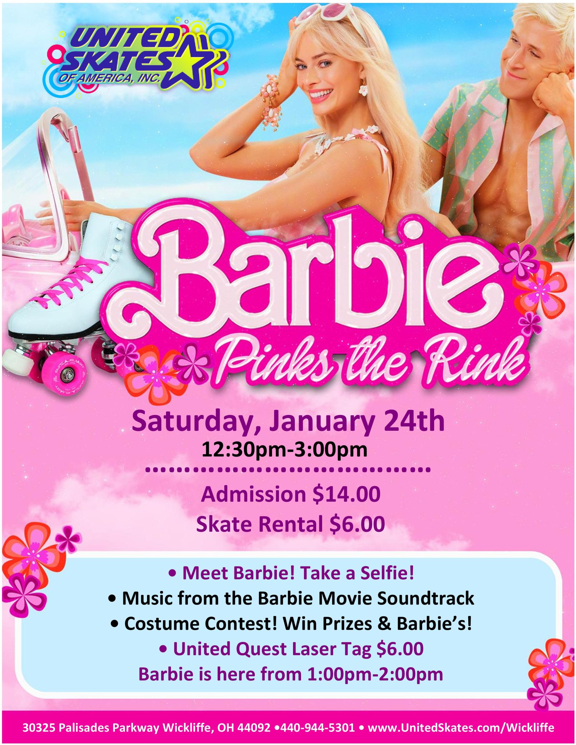 She’s had a long vacation, and now Barbie is ready to roll into United Skates for a super fun, pink-filled afternoon! Don’t miss your chance to meet Barbie in person and celebrate in style.