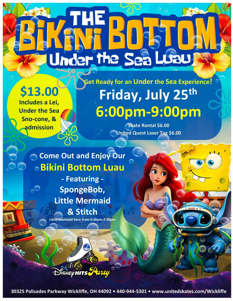 Get ready for a tropical twist on your favorite undersea adventure at the FIRST-EVER Bikini Bottom Luau — only at United Skates!