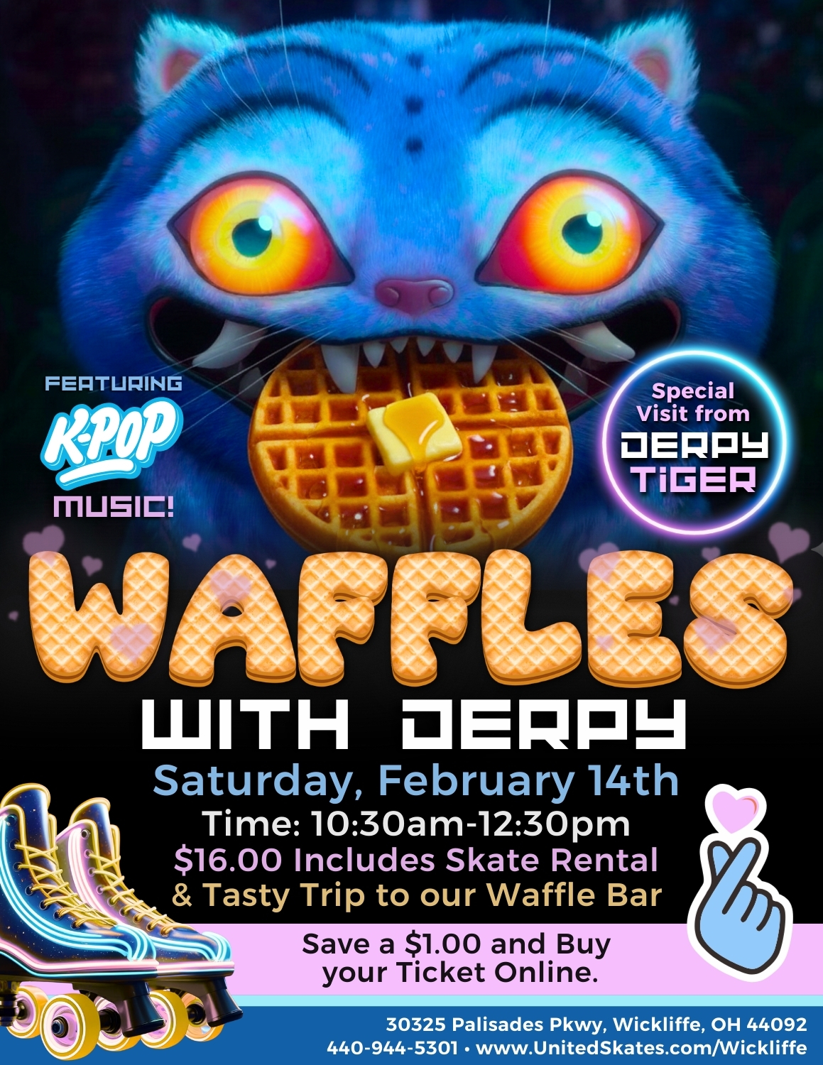 Join us for a magical morning filled with laughter, music, and roller-skating fun as Derpy makes a special appearance at the rink! Skate, dance, and snap the cutest photos while enjoying a warm, fluffy waffle to start your day off right. 😄✨