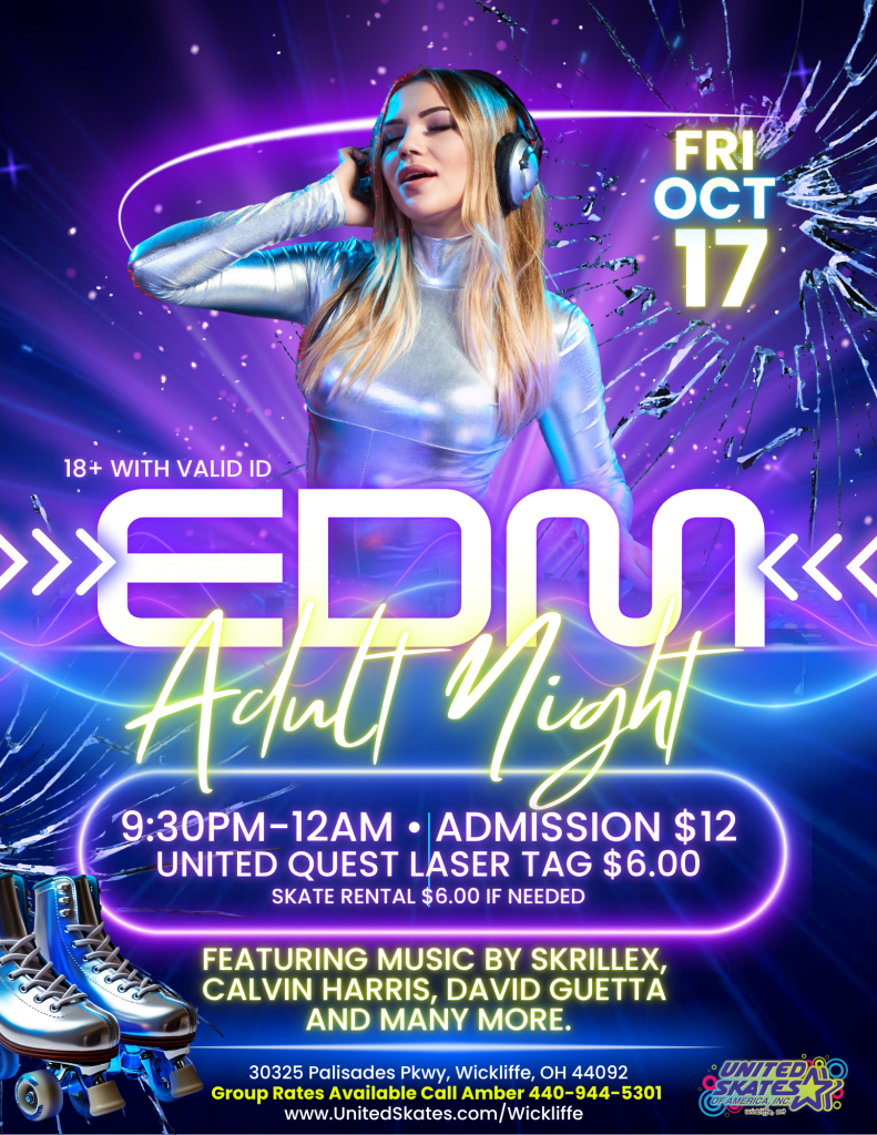 Get ready to skate under the glow of lasers and strobes at the ultimate EDM-fueled night on the rink!