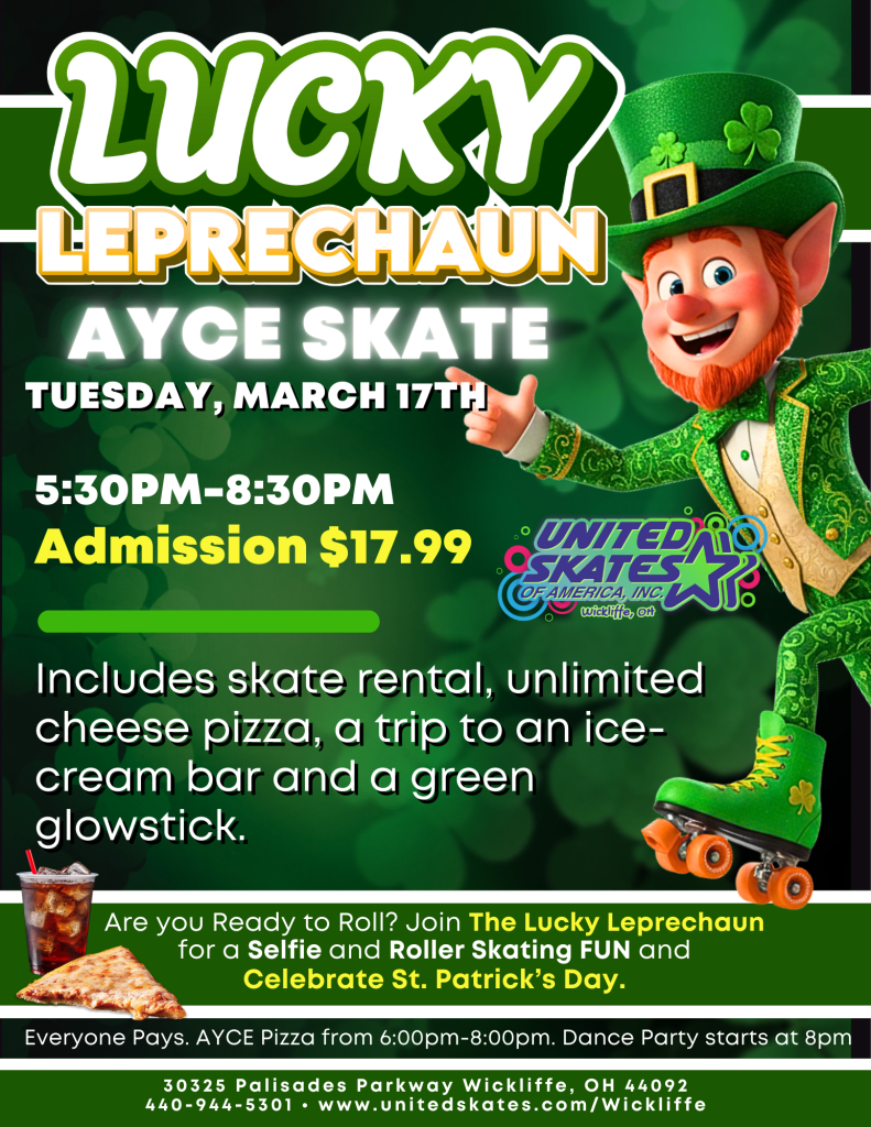 🌈 Wear green, bring your crew, and celebrate St. Patrick’s Day the LUCKY way! 🍀🛼✨