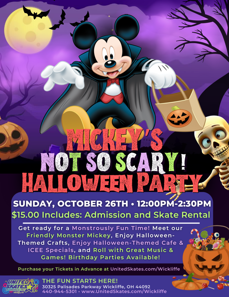 It’s time to kick off Halloween with Mickey at his Not-So-Scary Halloween Party! Bring your friends, dress in your favorite Halloween costume, and skate into a magical day full of fun, laughter, and festive surprises. 🛼💫