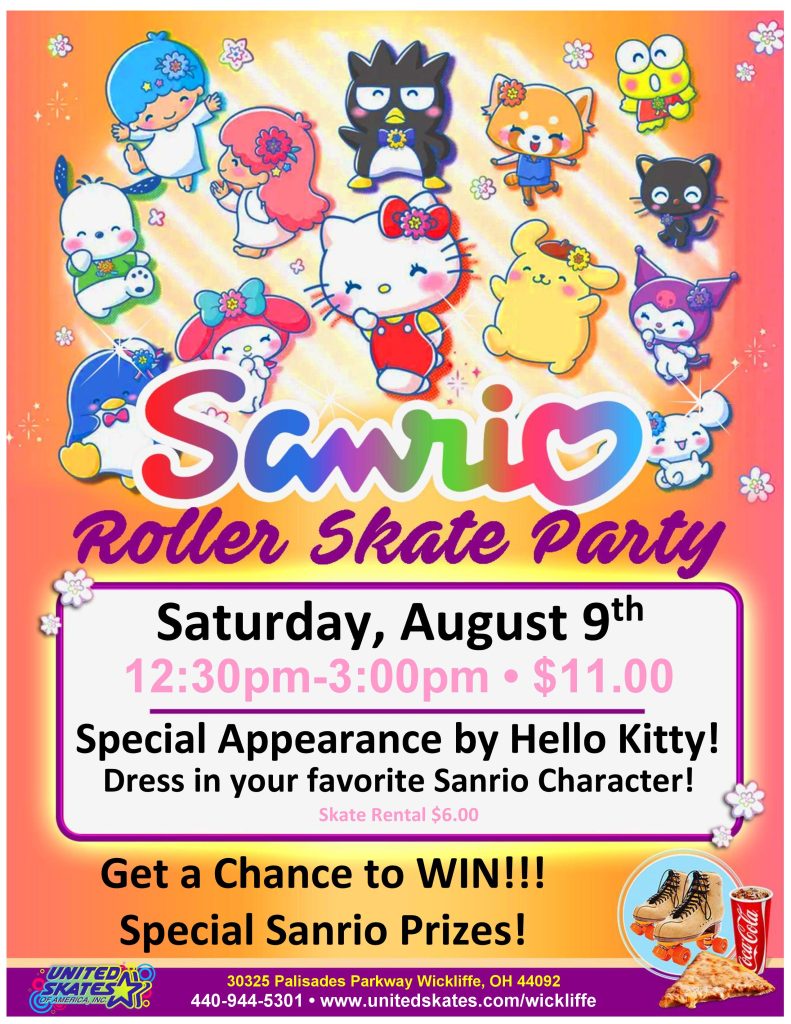 Join us for a Sanrio-filled skate session packed with fun, smiles, and your favorite adorable character.