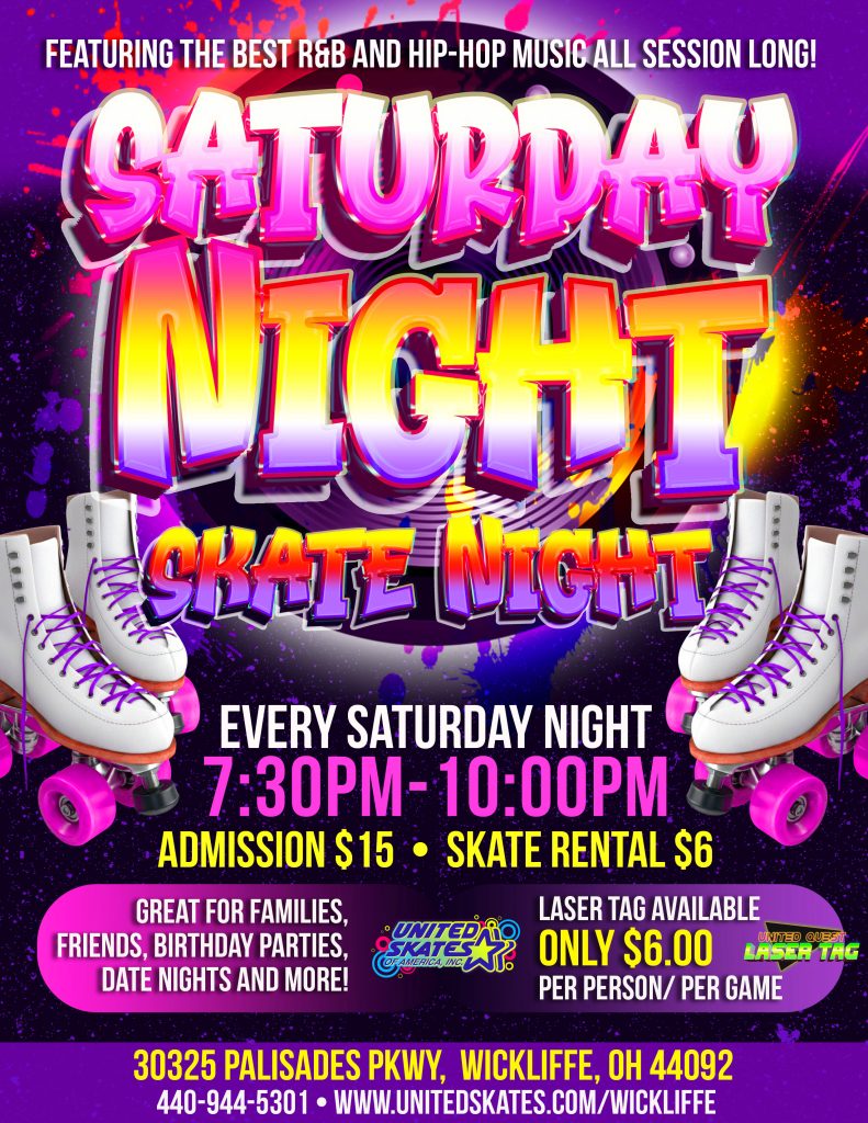Join us every Saturday from 7:30pm-10:00pm for an incredible night of skating fun!