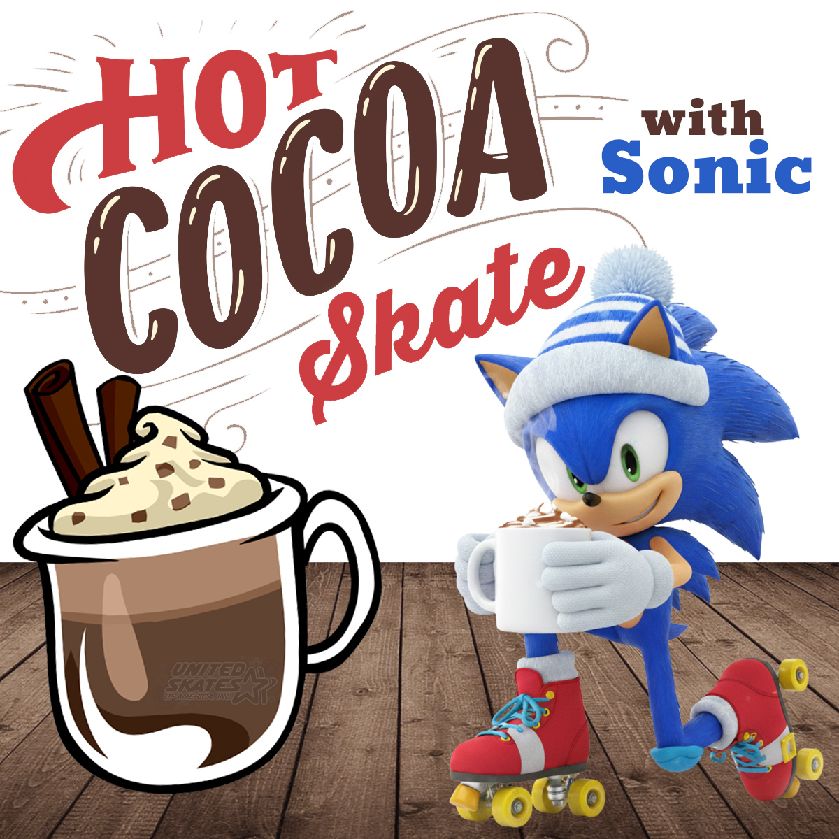 Get ready for a fast, fun, and frosty skate with Sonic at United Skates! He wants to warm you up with a free cup of his famous hot cocoa — included with paid admission.