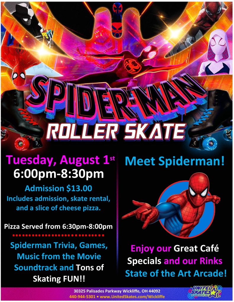 Admission $13.00 includes admission, skate rental, and a slice of cheese pizza