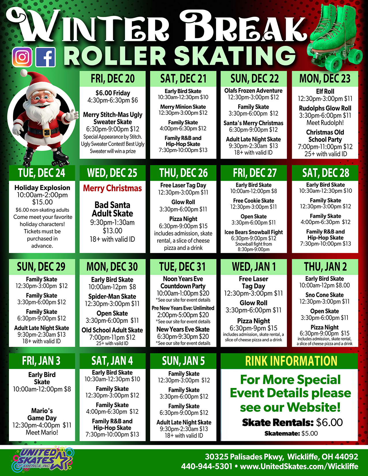 Winter Break Roller Skating is Friday, December 20,2024 through Sunday, January 5,2025 We are OPEN EVERYDAY for Adults, Kids, Families & Friends to come skate with us. See our SPECIAL […]