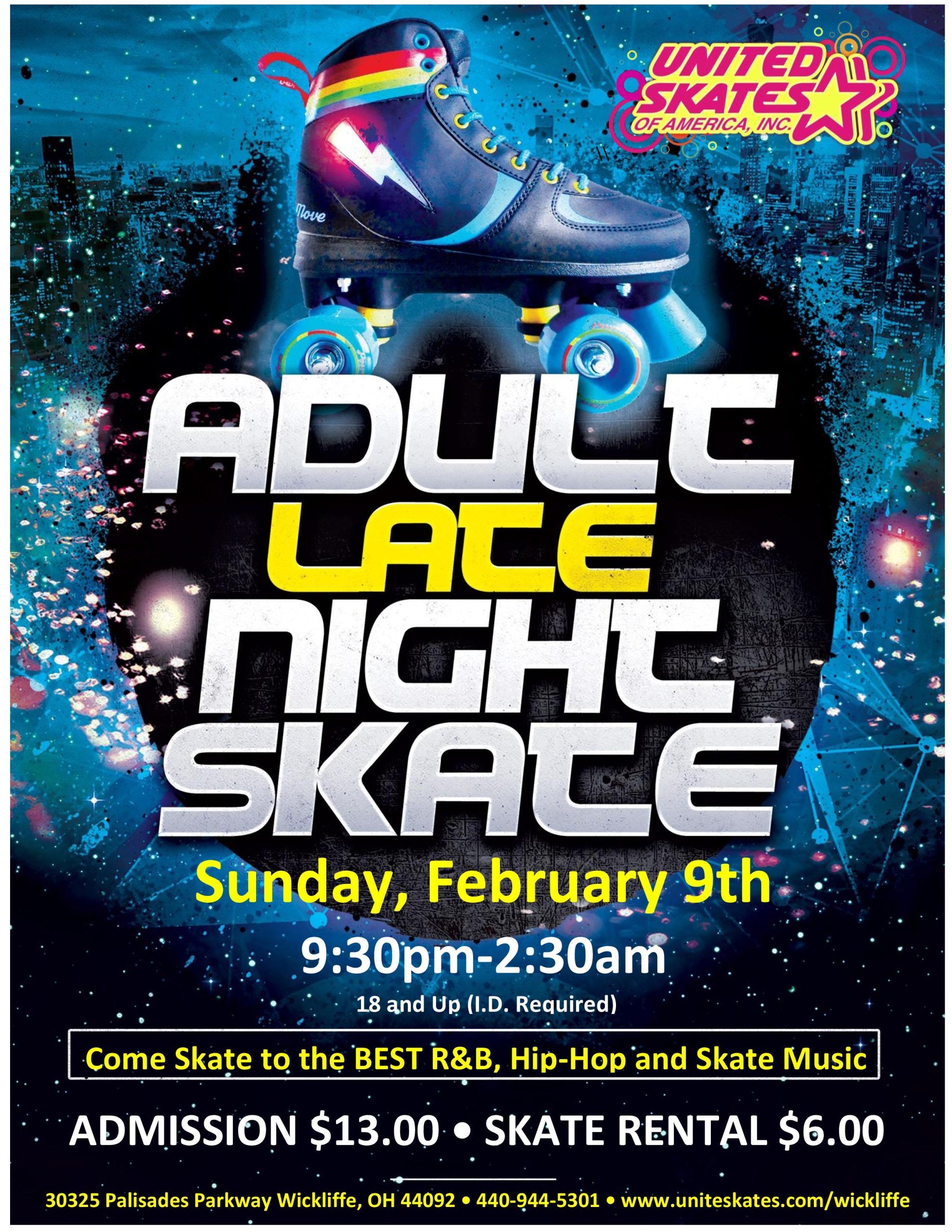 Adults, are you ready to relive the magic? We're throwing it back to the golden era of R&B music! Join us for an unforgettable night filled with soulful tunes, nostalgic vibes, and skating like nobody's watching! Friday, February 7th 9:30pm-12:30am Admission $12.00 Skate Rental $6.00 18+ with valid ID