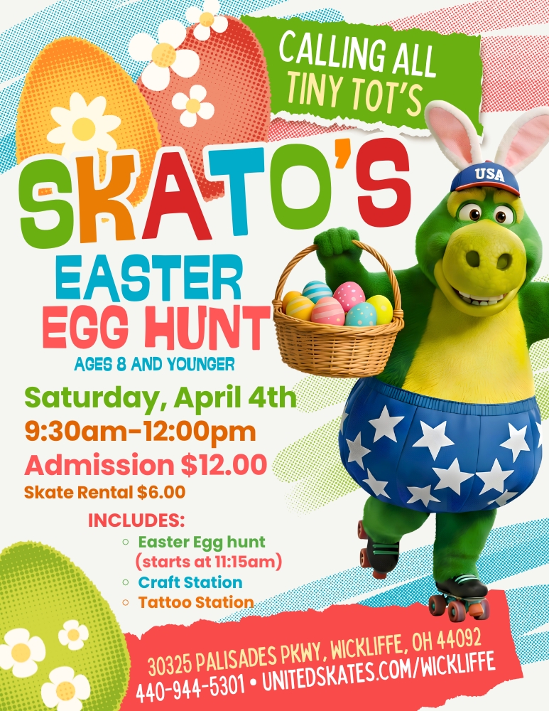 🐣🛼✨ SKATO IS READY FOR EASTER! ✨🛼🐣 He’s kicking off the holiday fun with his very own Tiny Tots Easter Egg Hunt — perfect for little skaters ages 8 and […]