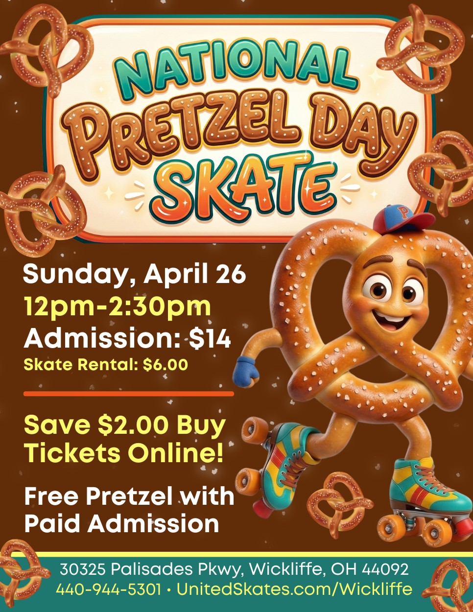 Twist into a deliciously fun afternoon of skating, music, and family excitement — and enjoy a FREE pretzel with your paid admission! 😋 🗓 Sunday, April 26th⏰ 12:00PM-2:30PM 🛼 Skate to great music👨👩👧👦 Fun […]