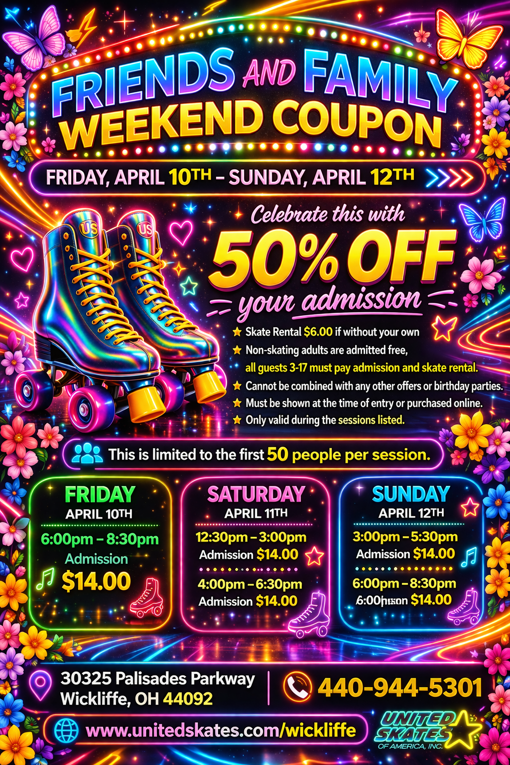 Get ready for an unforgettable weekend of fun, music, and skating! Join us for our Friends & Family Weekend and take advantage of an amazing deal — 50% OFF admission […]