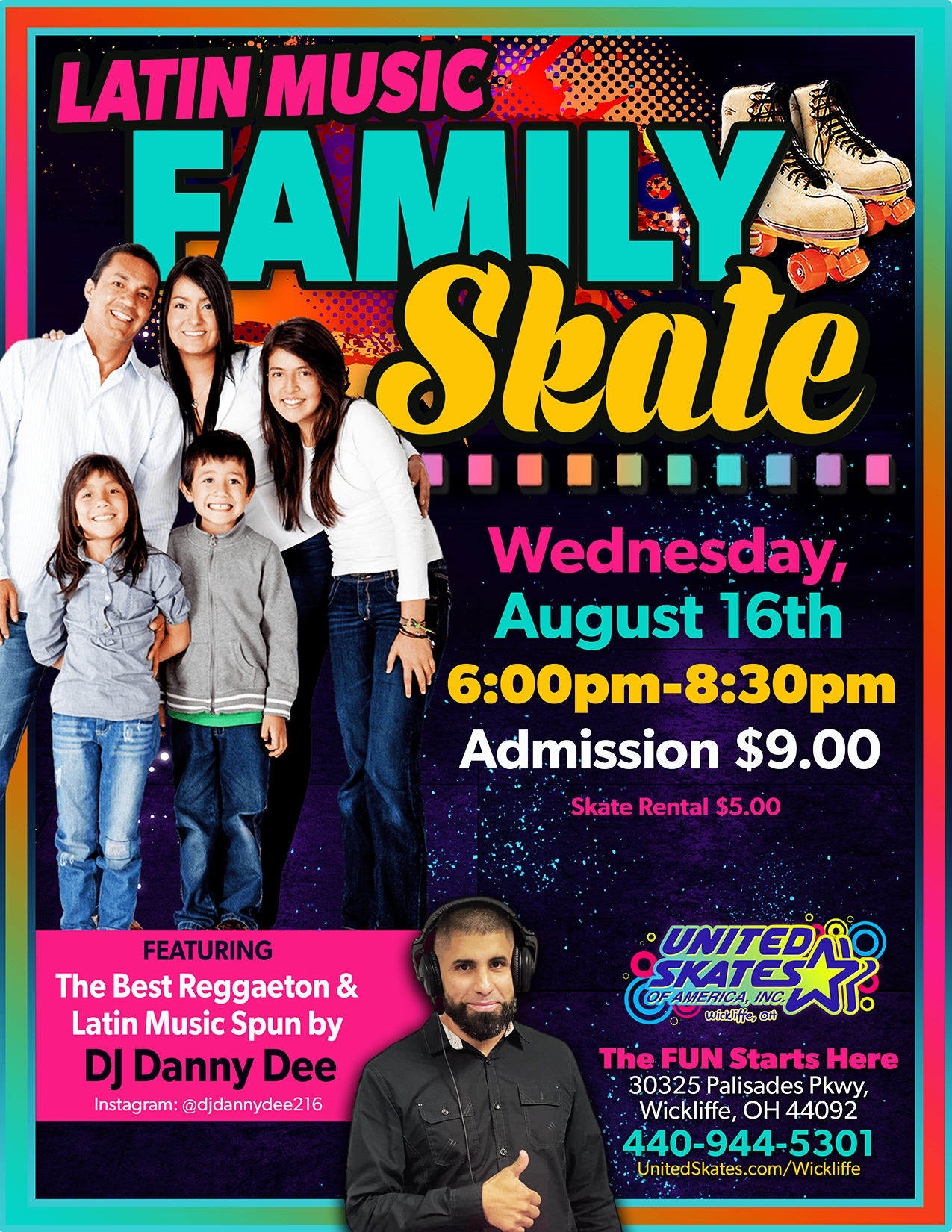 Come on down to our first ever Latin Music Family Skate Night! Bring your families out for a night of Reggaeton and Latin Music! Come see DJ Danny Dee LIVE he will be spinning all night! Wednesday, August 16th 6:00pm-8:30pm Admission only $9.00 Skate Rental $5.00 Fun for ALL Ages! All children between the ages […]