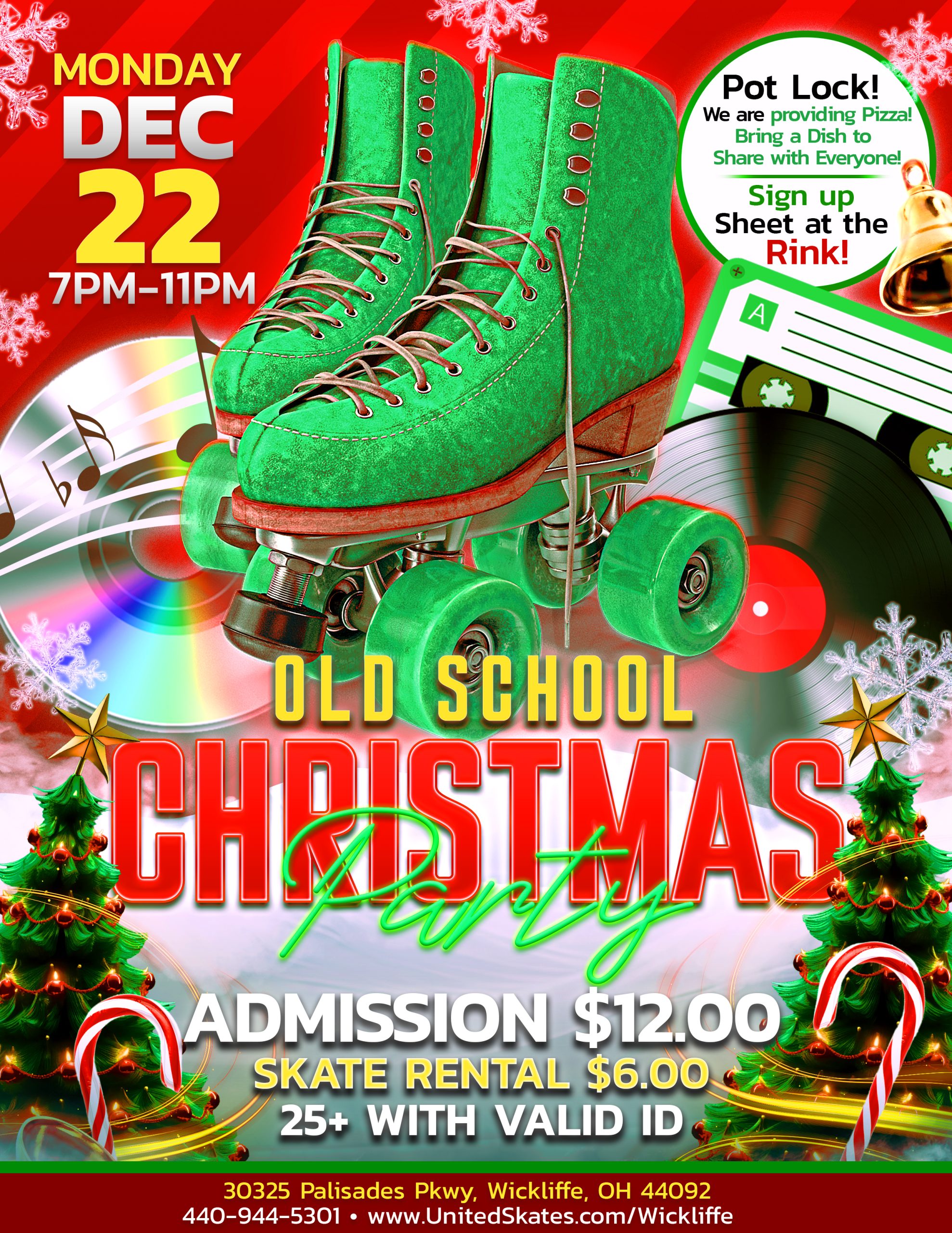 Ages 25+ | Valid ID Required Get ready to roll, vibe, and celebrate the holidays old-school style! 🛼✨Join us for a festive night filled with great music, good food, and even better company! 📅 Monday, December 22nd🕖 7:00pm – 11:00pm💲 Admission: $12.00 | Skate Rental: $6.00 🍕 United Skates is providing the pizza — and […]
