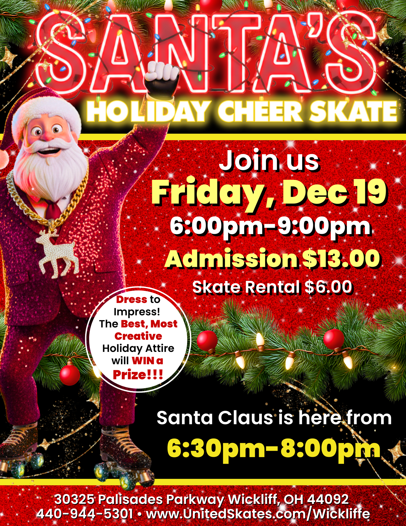 🎅✨ SPREAD HOLIDAY CHEER WITH SANTA! ✨🎅Get ready for a jolly night of festive fun at Santa’s Holiday Cheer Skate! 🎄🎁 Grab your skates, your friends, and your most creative holiday outfit for an evening filled with music, laughter, and holiday magic on wheels! 🌟⛸️ 📅 Friday, December 19th🕕 6:00pm–9:00pm🎅 Santa Appearance: 6:30pm–8pm 🎟️ Admission: $13.00🛼 Skate Rental: $6.00 🎉 HOLIDAY CHEER CONTEST!Show off your most festive, fun, or […]
