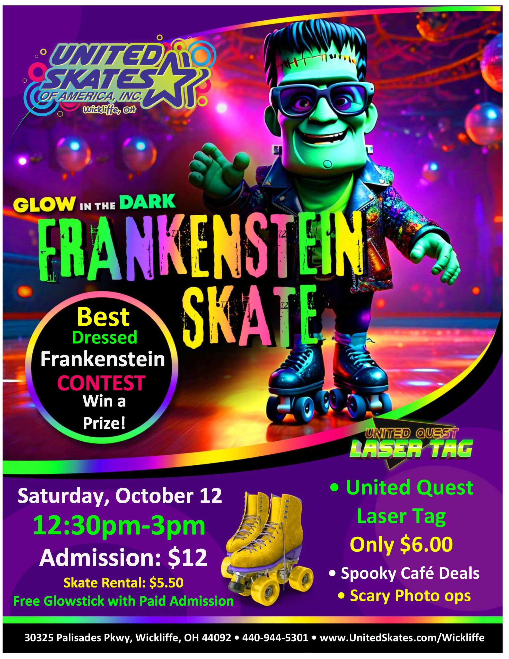 Frankenstein Glow in the Dark Skate Oct 12 Frankenstein Glow in the Dark Skate Featured 12:30 pm - 3:00 pm