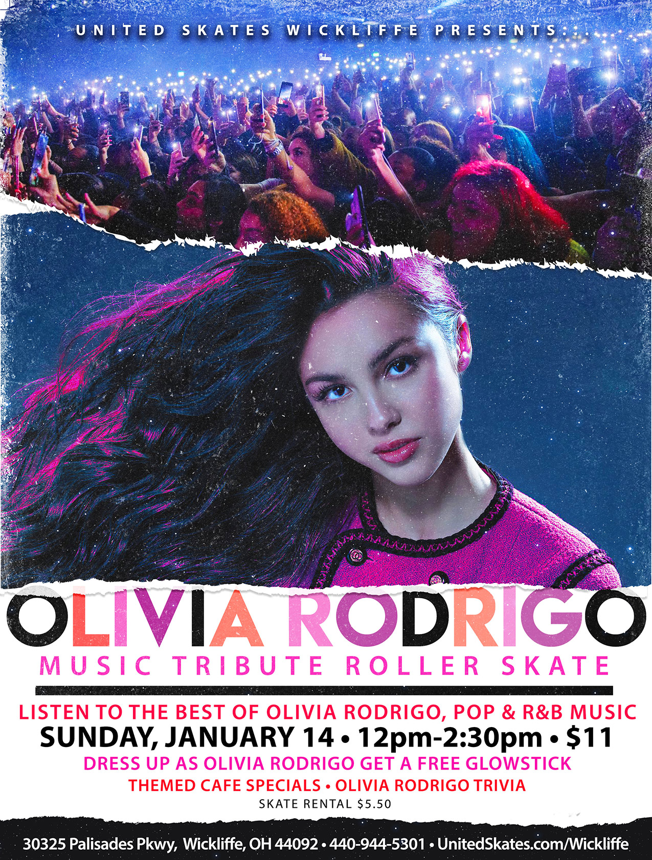 Olivia Rodrigo Glow in the Dark Skate Jan 14 Olivia Rodrigo Glow in the Dark Skate 12:00 pm - 2:30 pm