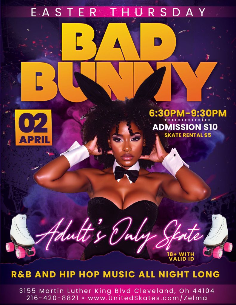 #AdultSkate #BadBunnyVibes #RNB #HipHopNight #ClevelandEvents #SkateNight #GrownAndSexy #NightOut #RollerSkating #ClevelandNightlife #VibesOnVibes #AdultsOnly 🐰🛼🔥
