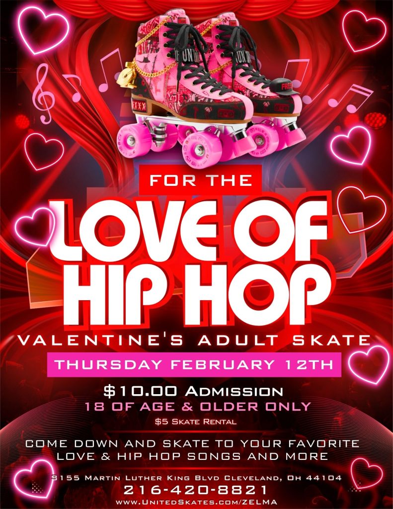 #ForTheLoveOfHipHop #AdultSkateNight #ValentinesVibes #GrownAndSexy #HipHopSkate #SkateNight #ClevelandEvents #RollerSkating #DateNightIdeas #UnitedSkates