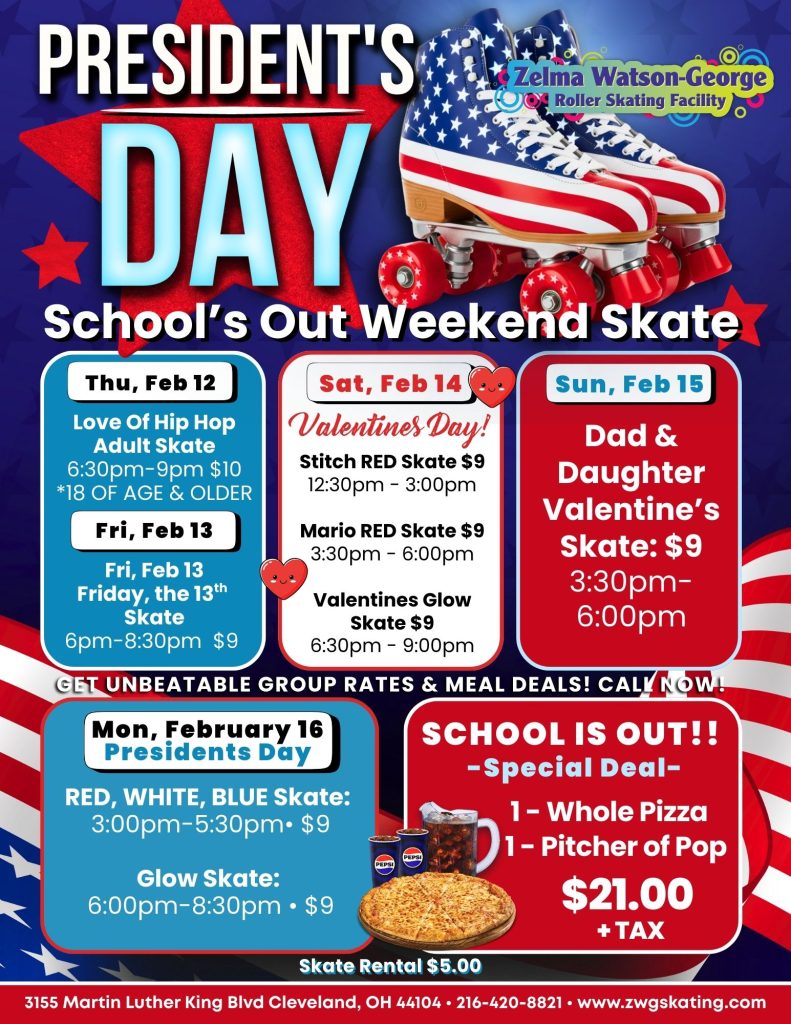 School’s out and the fun is ON at Zelma Watson-George Roller Skating Facility! 🎉✨ We’ve got a whole weekend packed with themed skates, Valentine vibes, glow nights, and family fun — there’s something for EVERYONE!