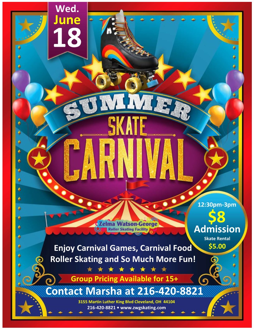 Come out for Carnival Roller Skate on June 18th from 12:30pm-3:00pm