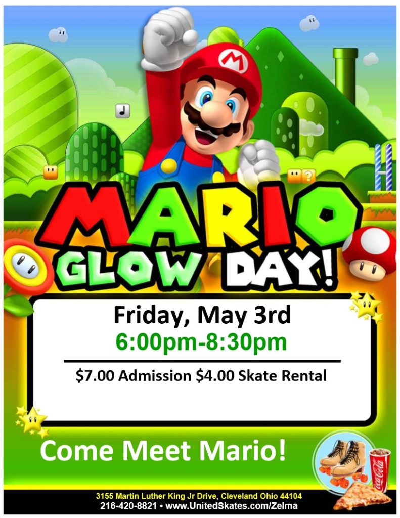 Come join us on Friday May 3rd for roller-skating fun and a special appearance by Mario!