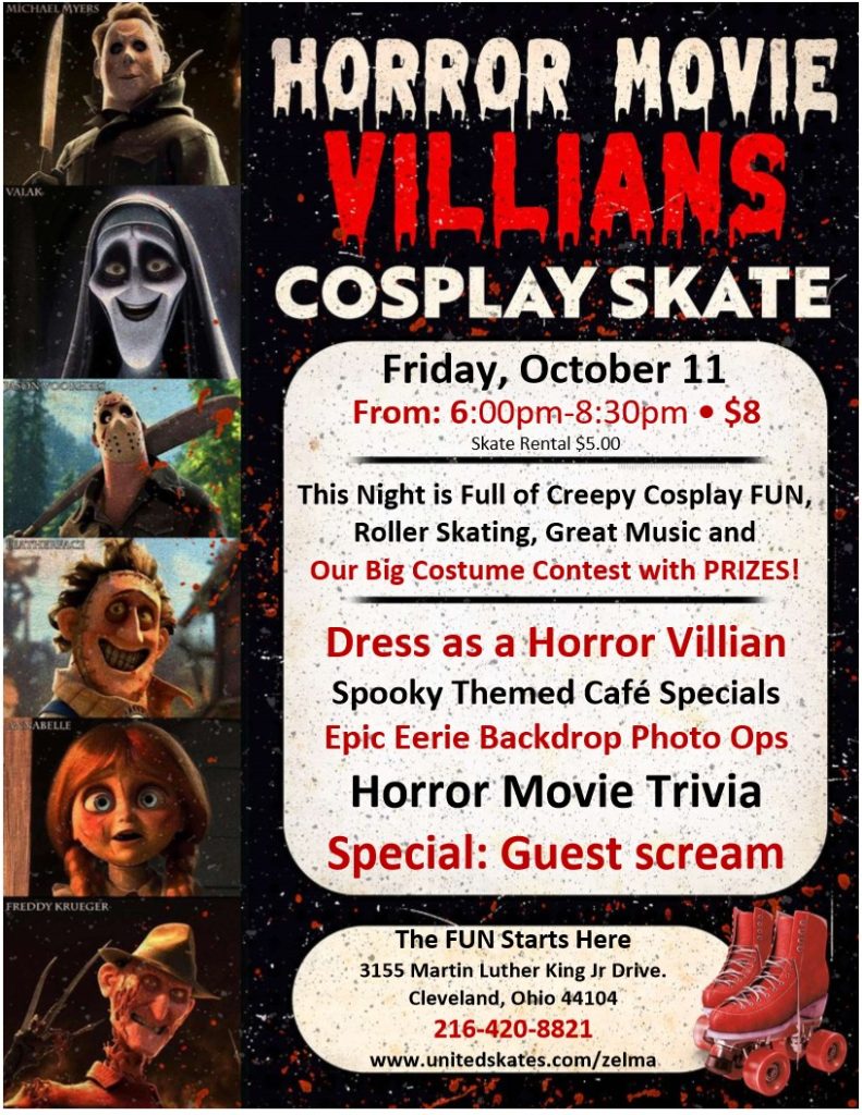Get ready for a night of thrills at the Horror Movie Villains Cosplay skate!
