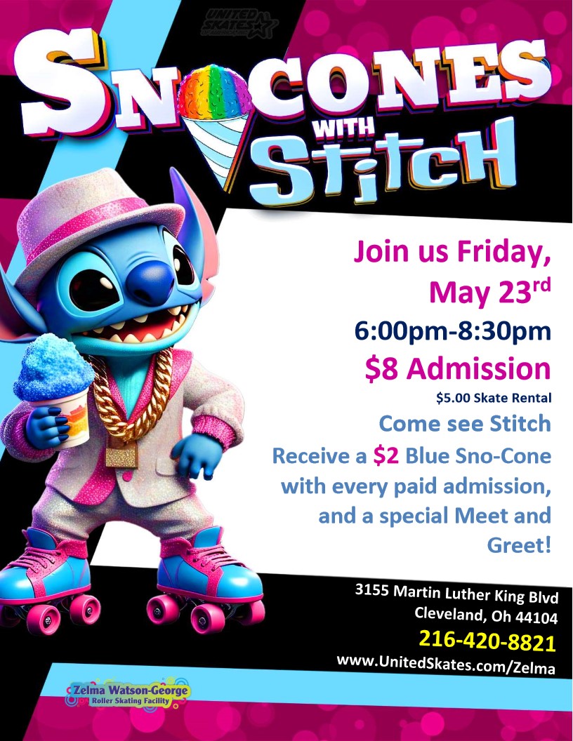 Fun-Loving Blue Alien Stitch is coming to Zelma Watson George Roller Skating Center