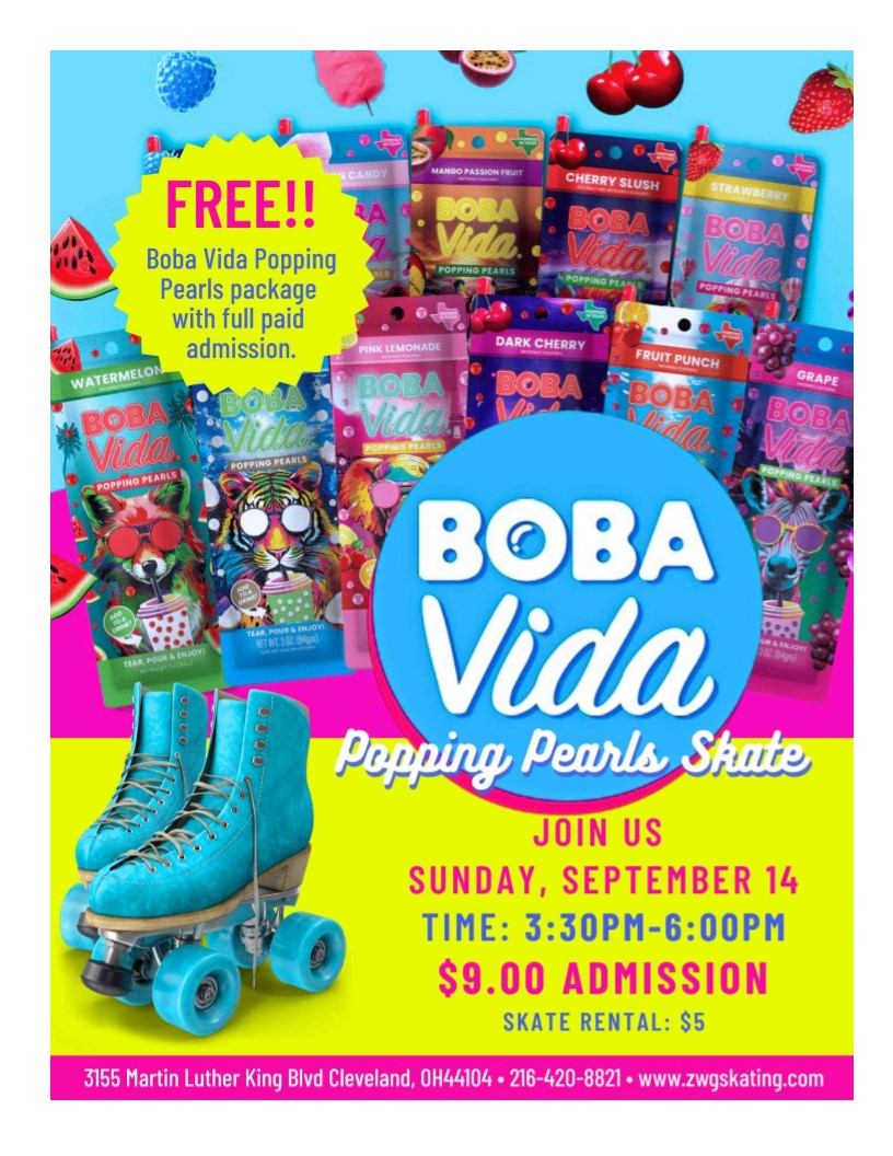 Book your Birthday Party! Parties available from 3:30pm-6:00pm Free Boba with Every Paid Admission Admission $9.00 Skate Rental $5.00 Featuring Pop and R&B Music Mix