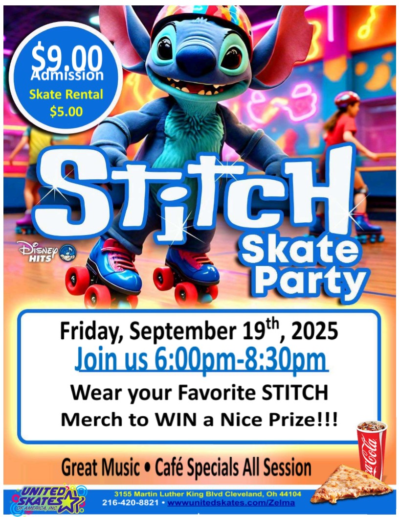 Stitch Ultimate Skate Party! Wear your favorite Stitch Gear and win Prizes! $9.00 admission $5.00 Skate Rental
