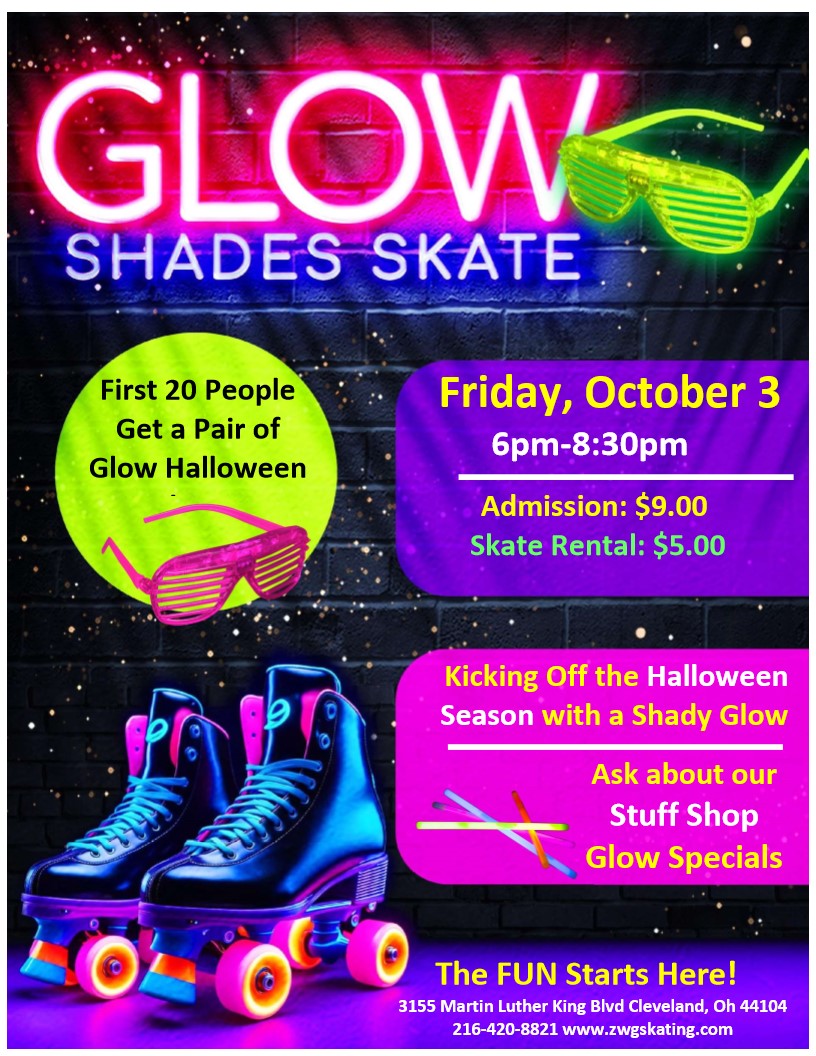 Book your Birthday Party! Parties available from 6:00pm-8:30pm First 20 People will receive a Free pair of Shades! Admission $9.00 Skate Rental $5.00 Featuring Pop and R&B Music Mix