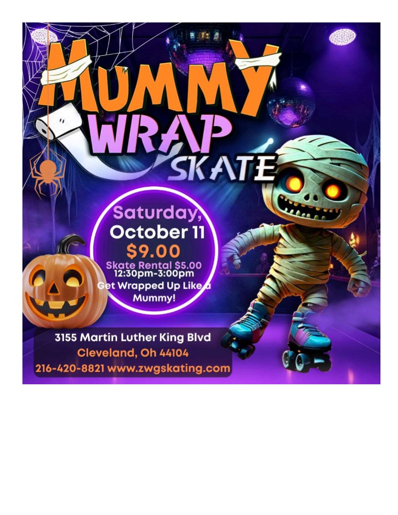 Great Time for Birthdays! Mummy Wrap day! Lucky winners will participate in Mummy wrap contest to win prizes! $9.00 admission $5.00 Skate Rental